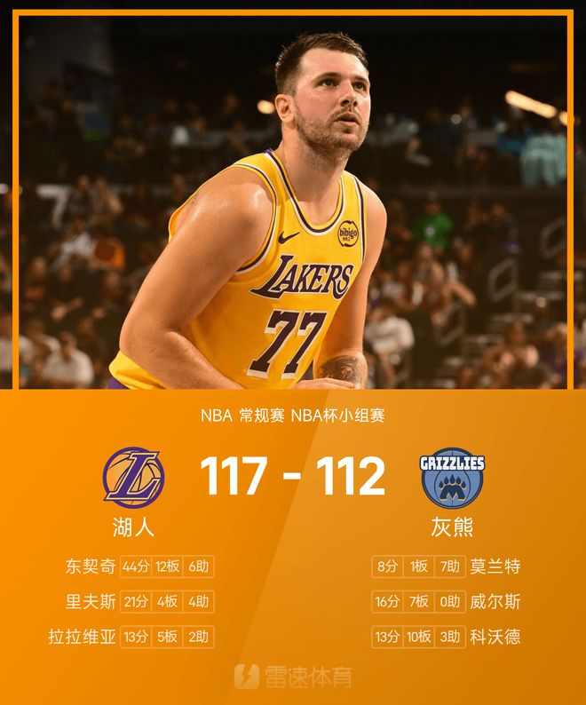 东契奇复出爆砍44分12篮板6助攻,灰熊6人得分上双依然不敌湖人。